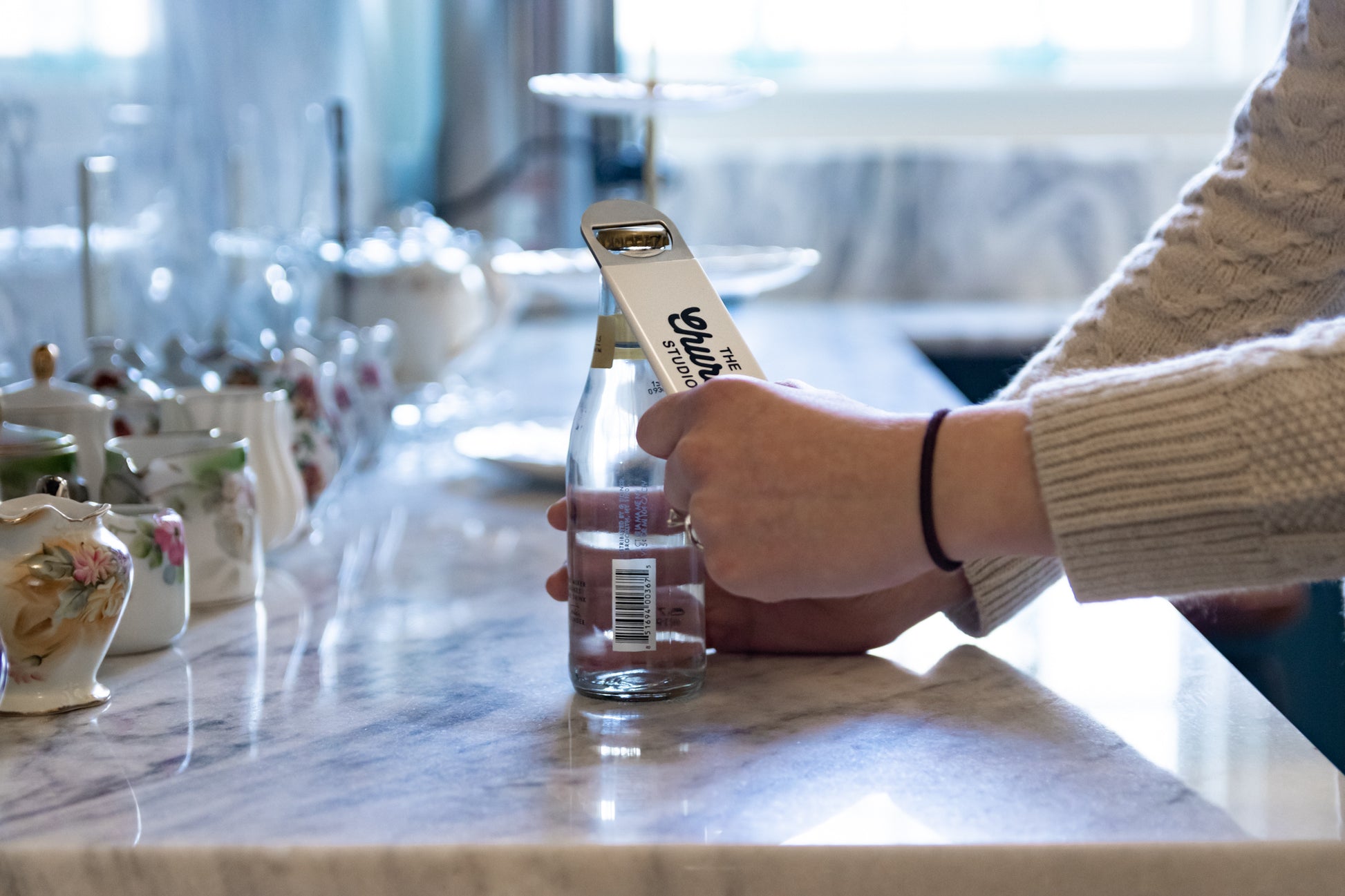 This stylish bottle opener is made of stainless steel with a vinyl overlay. Durable stainless steel construction ensures long-lasting use while the vinyl provides a comfortable hold for breweries or home use.